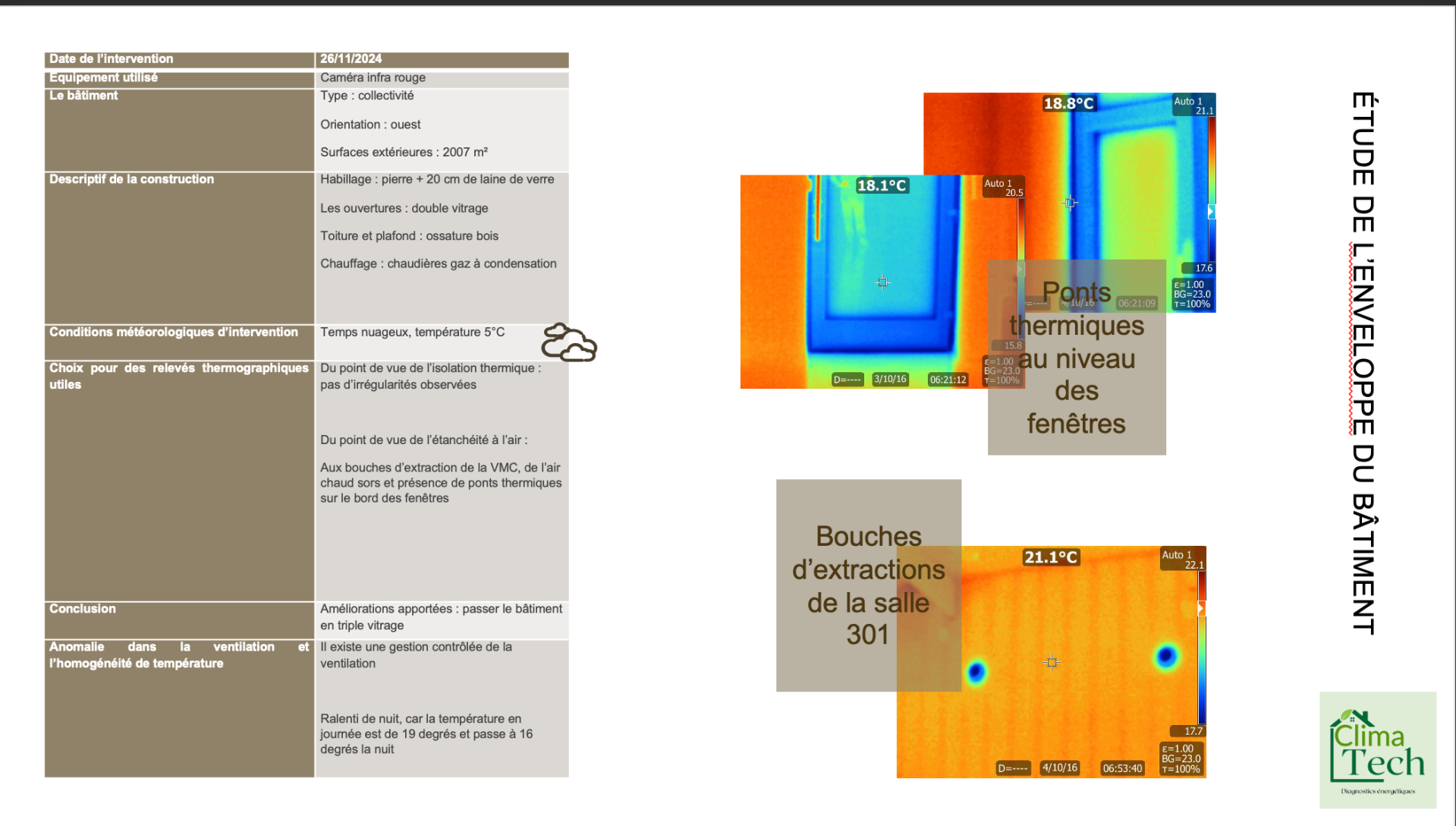 L’objectif était de permettre une analyse énergétique approfondie en vue d’une future rénovation, en installant les instruments adaptés au suivi réel des consommations et du confort thermique.