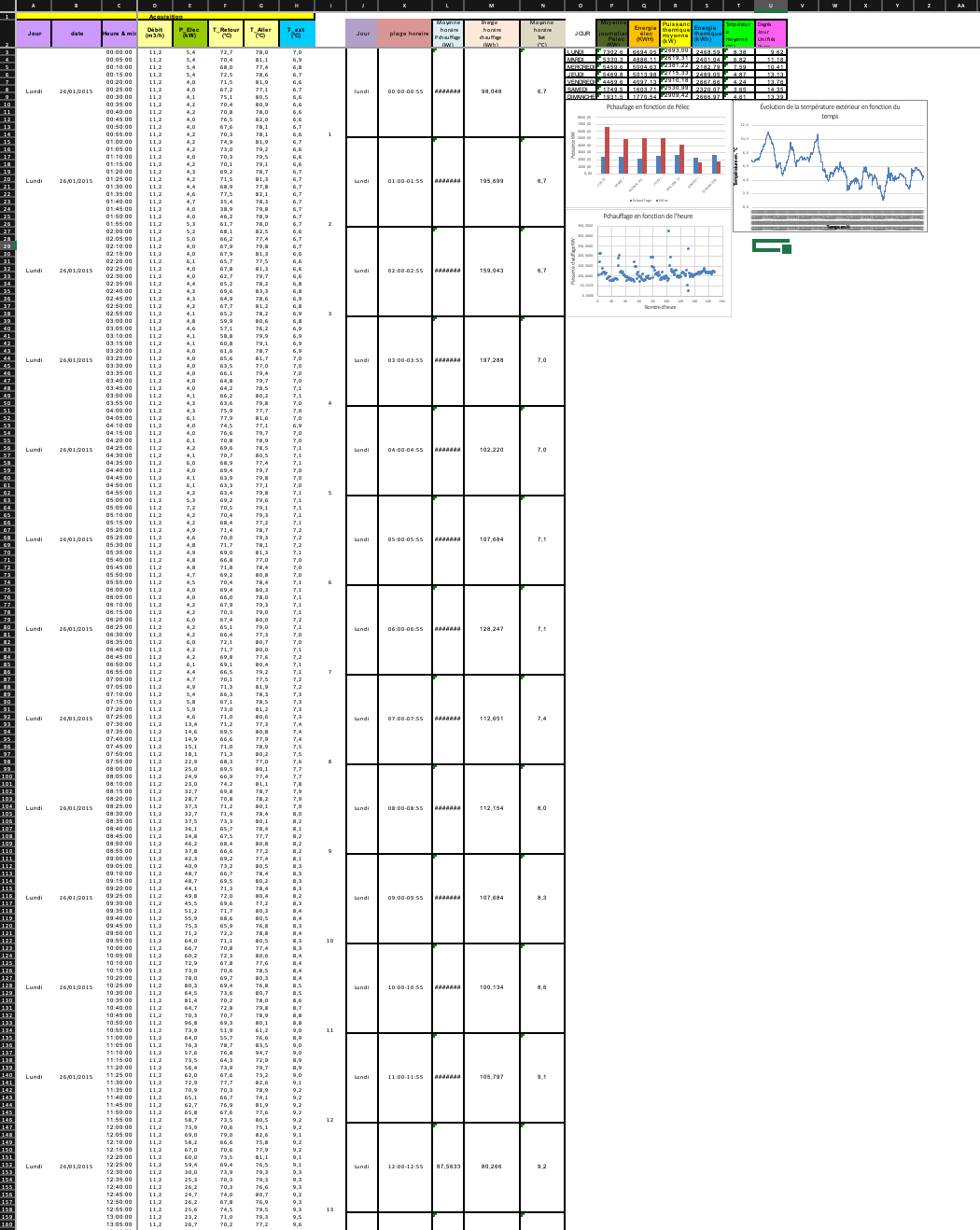 Nous avons exploité un fichier Excel contenant des relevés électriques et de température mesurés toutes les 5 minutes dans un bâtiment. Ces données réelles ont servi de base pour effectuer des analyses énergétiques approfondies.