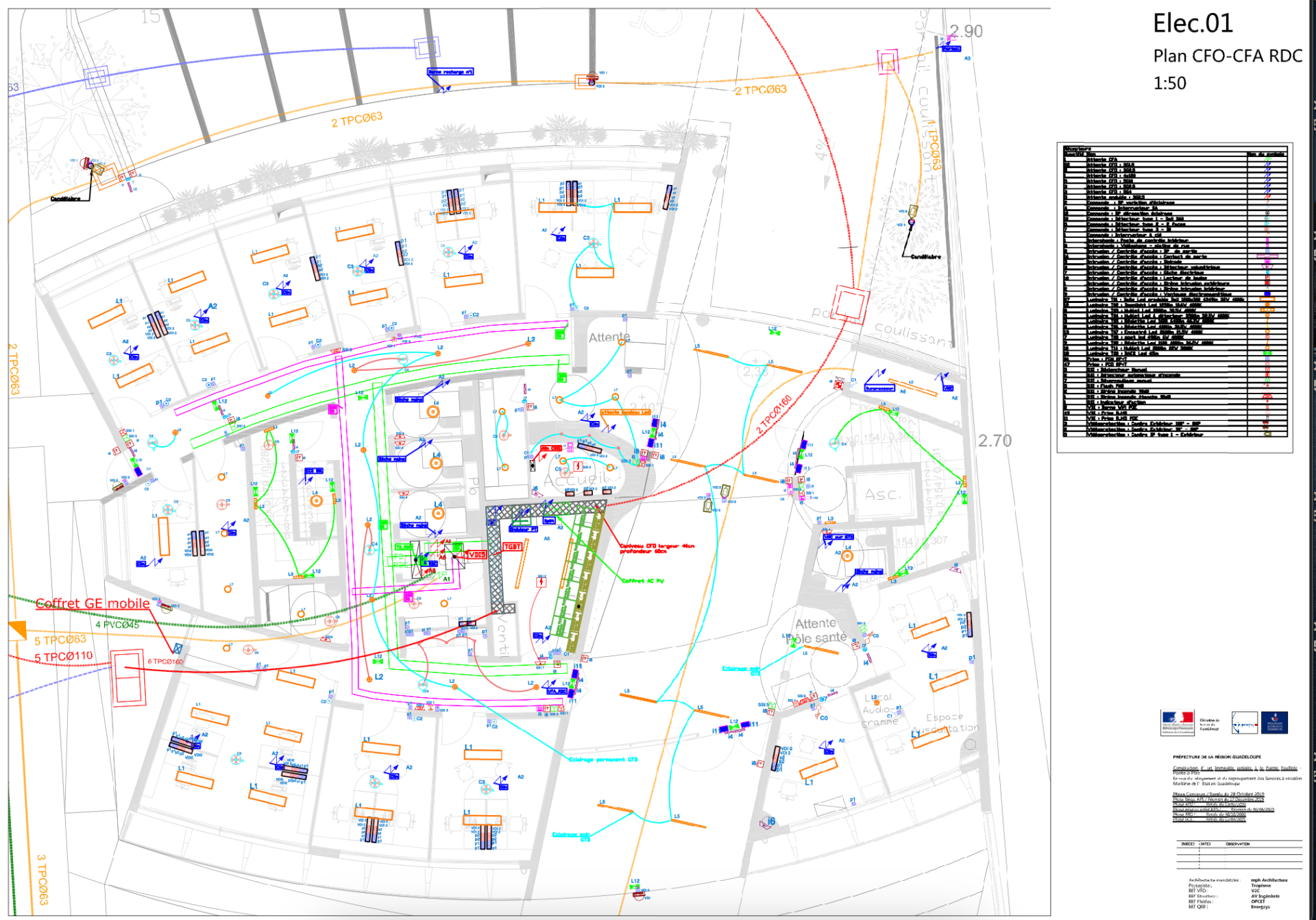 nous avons également identifié et localisé tous les éléments électriques sur les plans du bâtiment :
