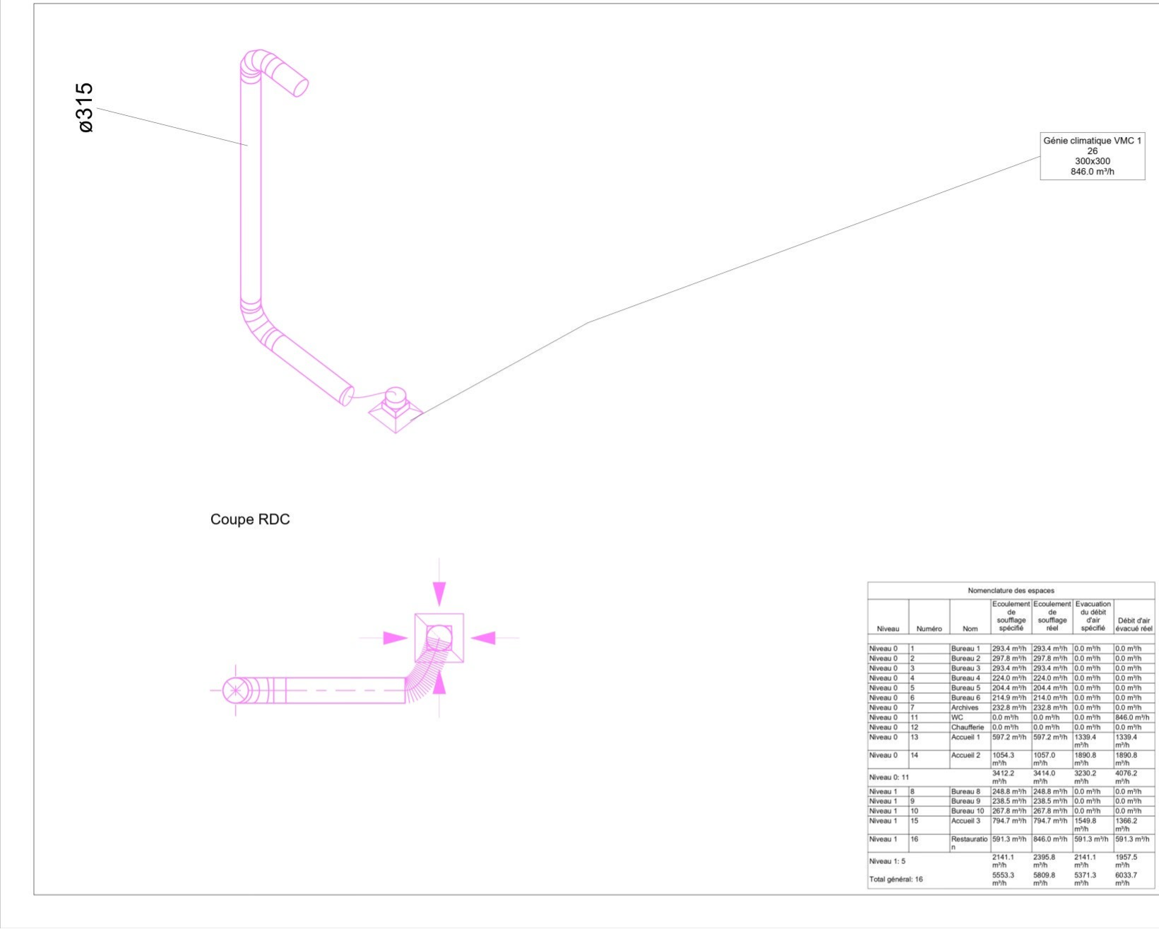 Traçage du réseau principal de gaines (soufflage et extraction et VMC)