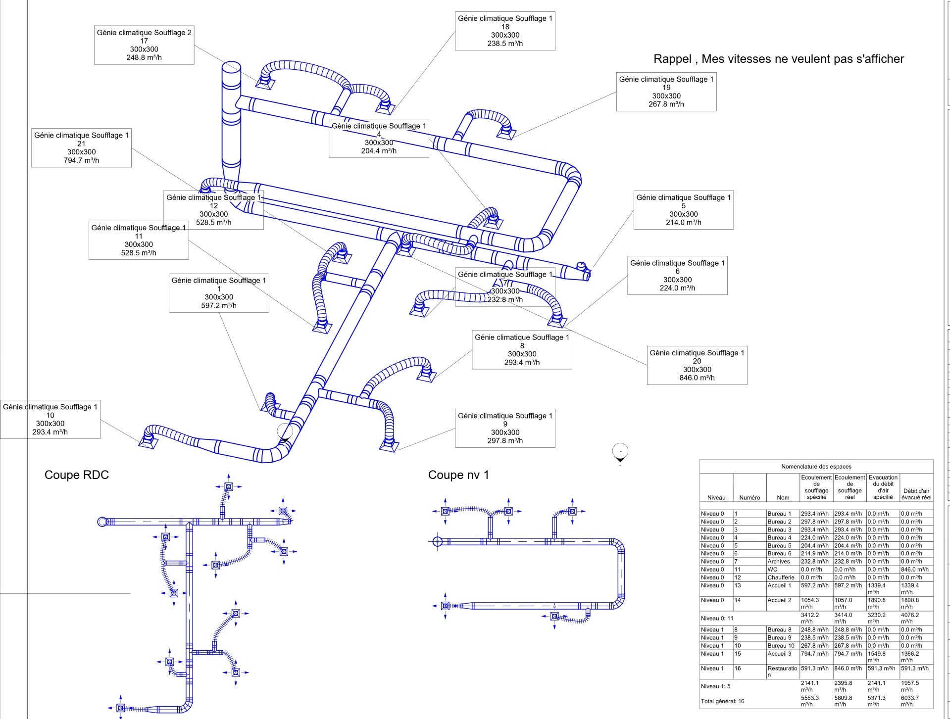 Vérification des sections de gaines et des débits par pièce